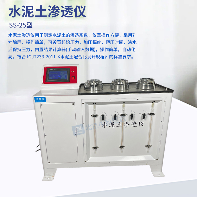 水泥土滲透儀用于測(cè)定水泥土的滲透系數(shù),儀器操作方便,采用7寸觸屏,操作簡單,可設(shè)置起始?jí)毫Γ訅悍?,恒壓時(shí)間,滲水后保持壓力,內(nèi)置結(jié)果計(jì)算器(手動(dòng)輸入數(shù)據(jù)),操作簡單,自動(dòng)化高,符合JGJT233-2011《水泥土配合比設(shè)計(jì)規(guī)程》的標(biāo)準(zhǔn)要求。