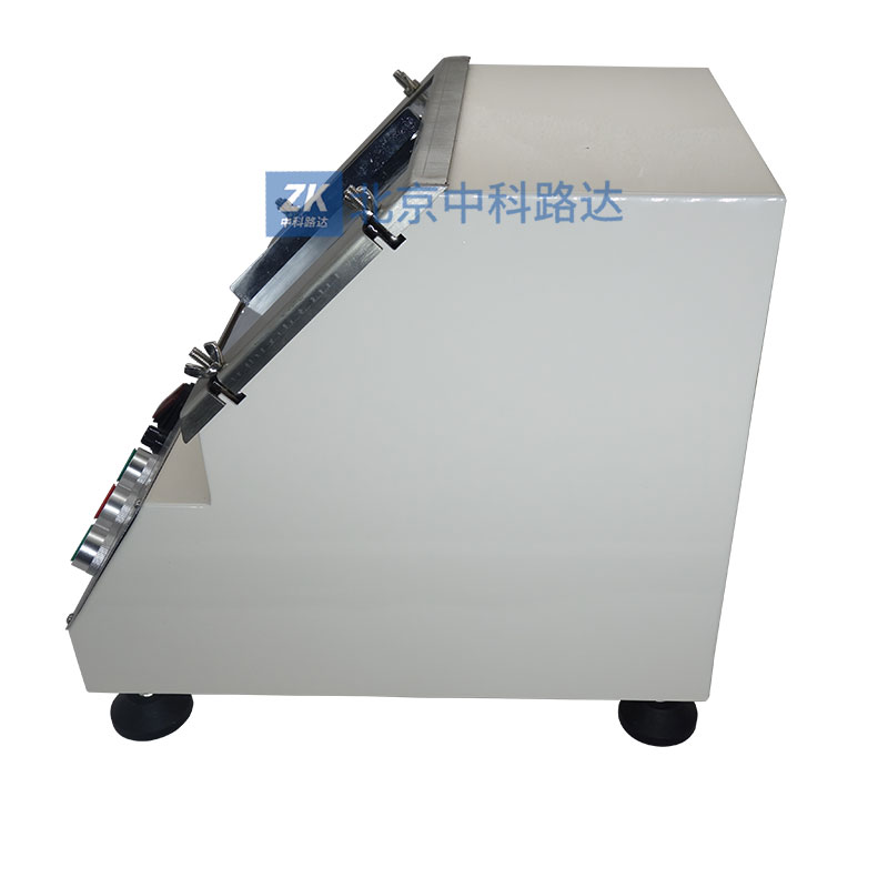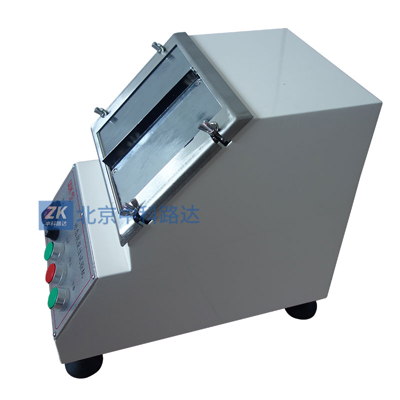 電機(jī)通過(guò)齒輪減速后拖動(dòng)頂桿作上升運(yùn)動(dòng),刀口產(chǎn)生上頂力,使石棉水泥板在規(guī)定的區(qū)域內(nèi)逐步產(chǎn)生細(xì)微裂紋并控制裂紋緩慢擴(kuò)展,觀(guān)察膩?zhàn)訉拥母闪亚闆r,以此來(lái)表示膩?zhàn)拥挚够牧鸭y擴(kuò)展的能力。