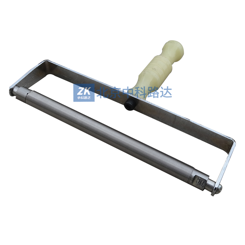 使用方法: 將樣板放在平臺(tái)上,予以固定,當(dāng)線棒涂布器滑過時(shí)不得移動(dòng)。按需要的濕膜厚度選擇線棒,放在樣板規(guī)定的位置上,然后在線棒的前面倒上試樣,用手握住其手柄,以150毫米/秒的速度勻速滑行,即涂布成需要厚度的濕膜。使用后用溶劑洗凈擦干(擠壓式雕刻型線棒涂布器要比普通線型線棒涂布器好清洗,而且干凈,不留余跡)。