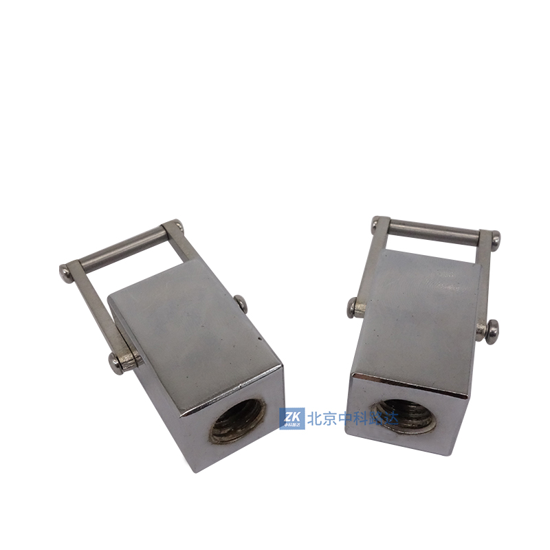 本夾具用于無疵小試樣木材的抗劈力的測定,模擬斧劈木材施力狀態(tài),在試樣一端垂直于木材紋理方向施加拉力,使試樣沿紋理劈裂,以測定木材的抗劈裂能力。符合GB/T1927.20-2021《無疵小試樣木材物理力學(xué)性質(zhì)試驗(yàn)方法第20部分:抗劈力測定》的標(biāo)準(zhǔn)要求。