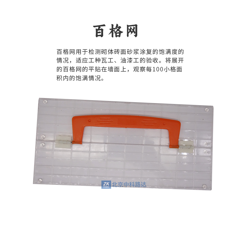 百格網(wǎng)用于檢測砌體磚面砂漿涂復(fù)的飽滿度的情況,適應(yīng)工種瓦工、油漆工的驗(yàn)收。將展開的百格網(wǎng)的平貼在墻面上,觀察每100小格面積內(nèi)的飽滿情況。