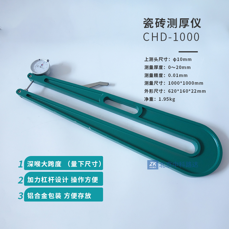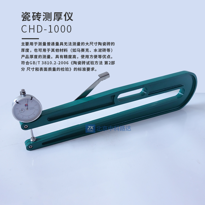 主要用于測(cè)量普通量具無(wú)法測(cè)量的大尺寸陶瓷磚的厚度,也可用于其他材料(如馬賽克、水泥磚等)產(chǎn)品厚度的測(cè)量。具有精度高,使用方便等優(yōu)點(diǎn)。符合GB/T 3810.2-2006《陶瓷磚試驗(yàn)方法 第2部分 尺寸和表面質(zhì)量的檢驗(yàn)》的標(biāo)準(zhǔn)要求。