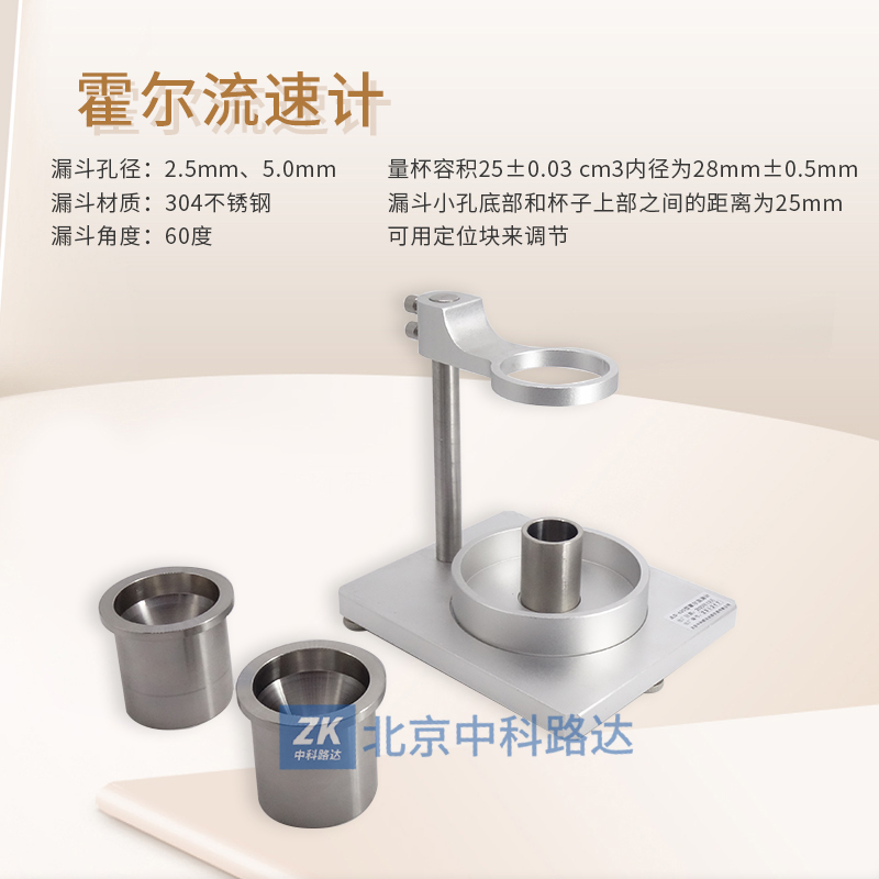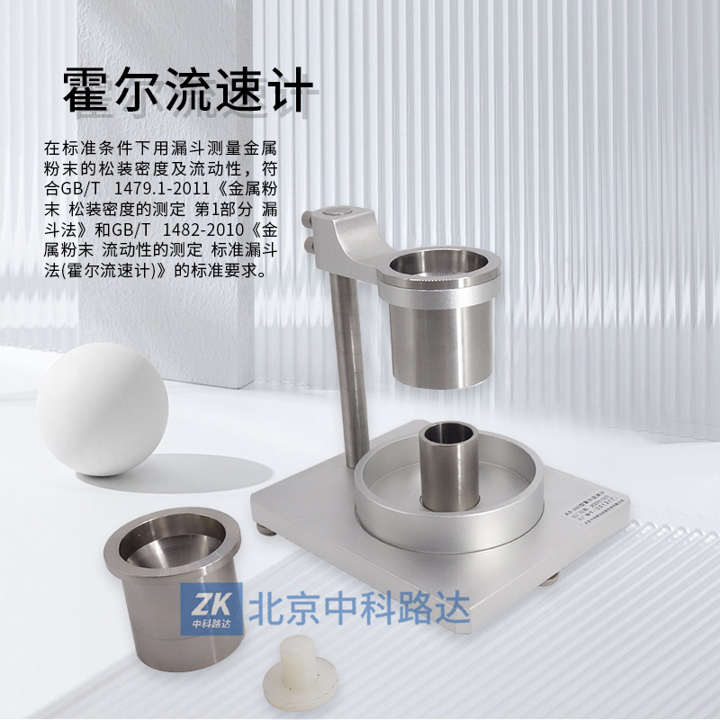標(biāo)準(zhǔn)條件下用漏斗測(cè)量金屬粉末松裝密度及流動(dòng)性,符合GB/T 1479.1-2011金屬粉末 松裝密度的測(cè)定 1部分 漏斗法GB/T 1482-2010金屬粉末 流動(dòng)性的測(cè)定 標(biāo)準(zhǔn)漏斗法(霍爾流速計(jì))的標(biāo)準(zhǔn)要求。