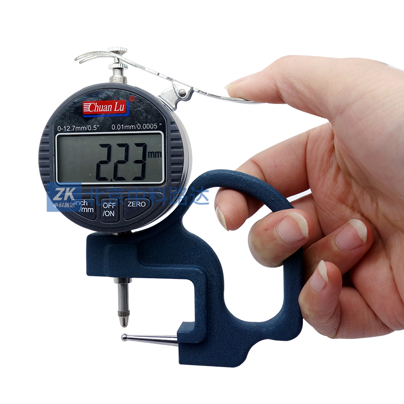 3、將被測對象放入上,下測鉆(頭)卡緊,指針讀數(shù)值即為被測對象厚度;
