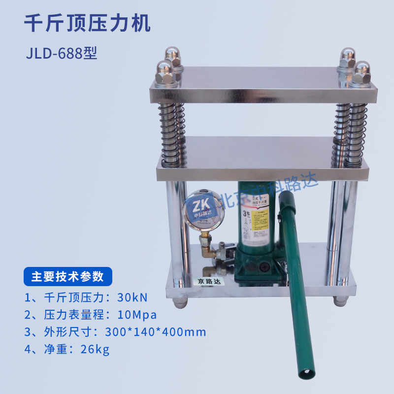 手動(dòng)千斤頂壓力機(jī)用于水泥抗硫酸鹽侵蝕試體成型,符合GB/T 749-2008 《水泥抗硫酸鹽侵蝕試驗(yàn)方法》的標(biāo)準(zhǔn)要求。...