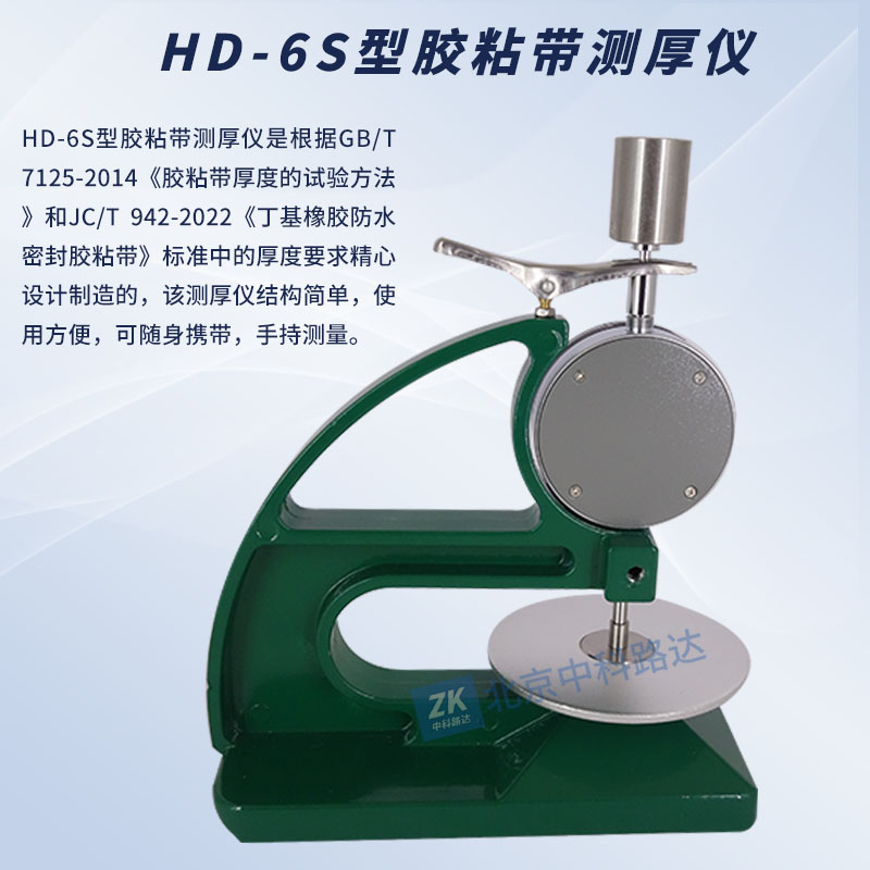 HD-6S型膠粘帶測厚儀是根據(jù)GB/T 7125-2014《膠粘帶厚度的試驗方法》和JC/T 942-2022《丁基橡膠防水密封膠粘帶》標準中的厚度要求精心設(shè)計制造的,該測厚儀結(jié)構(gòu)簡單,使用方便,可隨身攜帶,手持測量。