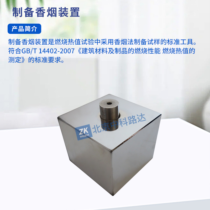 制備香煙裝置是燃燒熱值試驗中采用香煙法制備試樣的標(biāo)準(zhǔn)工具。符合GB/T 14402-2007《建筑材料及制品的燃燒性能 燃燒熱值的測定》的標(biāo)準(zhǔn)要求。