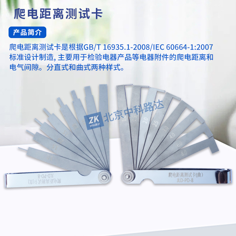 爬電距離測(cè)試卡是根據(jù)GB/T 16935.1-2008/IEC 60664-1:2007標(biāo)準(zhǔn)設(shè)計(jì)制造, 主要用于檢驗(yàn)電器產(chǎn)品等電器附件的爬電距離和電氣間隙。分直式和曲式兩種樣式。