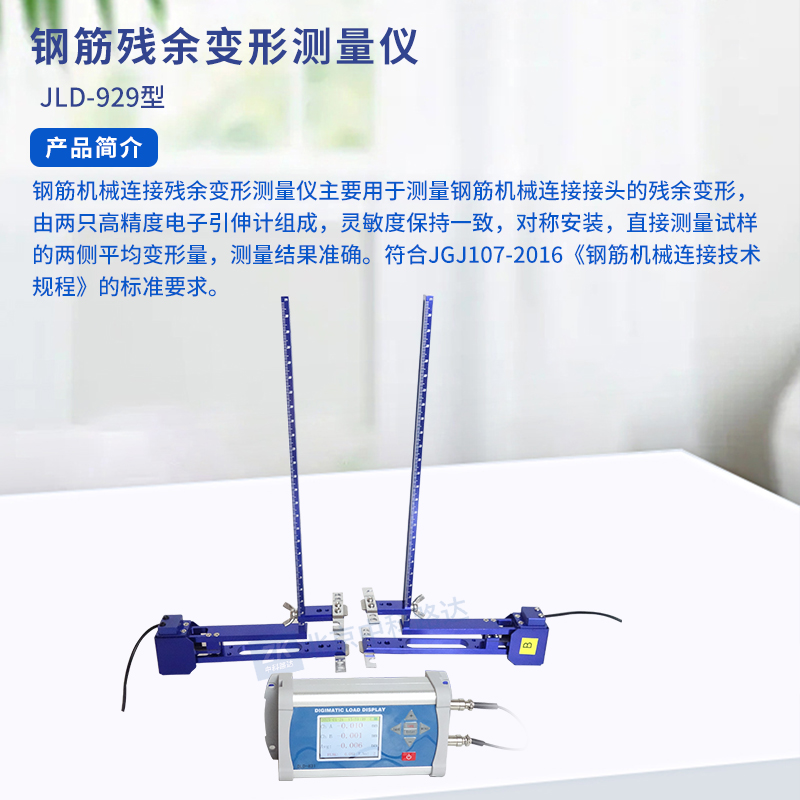 鋼筋機械連接殘余變形測儀主要用于測量鋼筋機械連接接頭的殘余變形,由兩只高精度電子引伸計組成,靈敏度保持一致,對稱安裝,直接測量試樣的兩側(cè)平均變形量,測量結(jié)果準(zhǔn)確。符合JGJ107-2016《鋼筋機械連接技術(shù)規(guī)程》的標(biāo)準(zhǔn)要求。