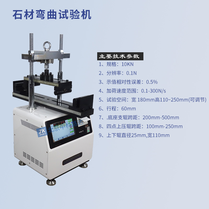 石材彎曲試驗機(jī)用于天然石材彎曲強(qiáng)度試驗。配有固定力矩彎曲強(qiáng)度和集中荷載彎曲強(qiáng)度夾具,適用于建筑幕墻、室內(nèi)墻地面用石材的固定力矩彎曲強(qiáng)度和室外廣場、路面用石材的集中荷載彎曲強(qiáng)度試驗。符合GB/T 966.2-2020《天然石材試驗方法 第2部分:干燥、水飽和、凍融循環(huán)后彎曲強(qiáng)度試驗》的標(biāo)準(zhǔn)要求。