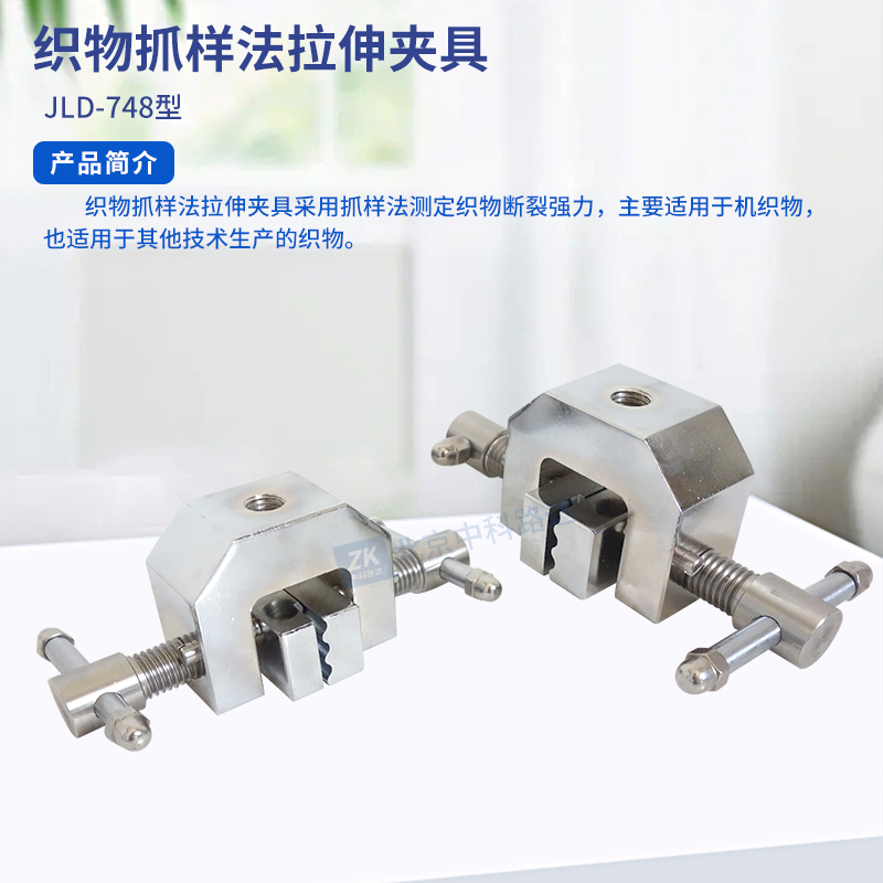 織物抓樣法拉伸夾具采用抓樣法測定織物斷裂強(qiáng)力,主要適用于機(jī)織物,也適用于其他技術(shù)生產(chǎn)的織物。